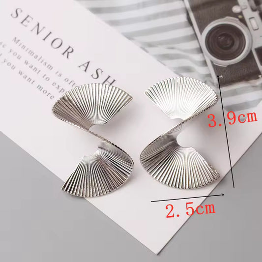 Spiral Twist Metal Dangle Earrings – Exaggerated Irregular Geometric Design, Elegant Smooth Brincos Jewelry